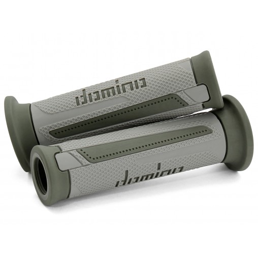 REVETEMENT POIGNEE DOMINO A350 GRIS/VERT OPEN END 120mm (LA PAIRE) MOTO TOURING
